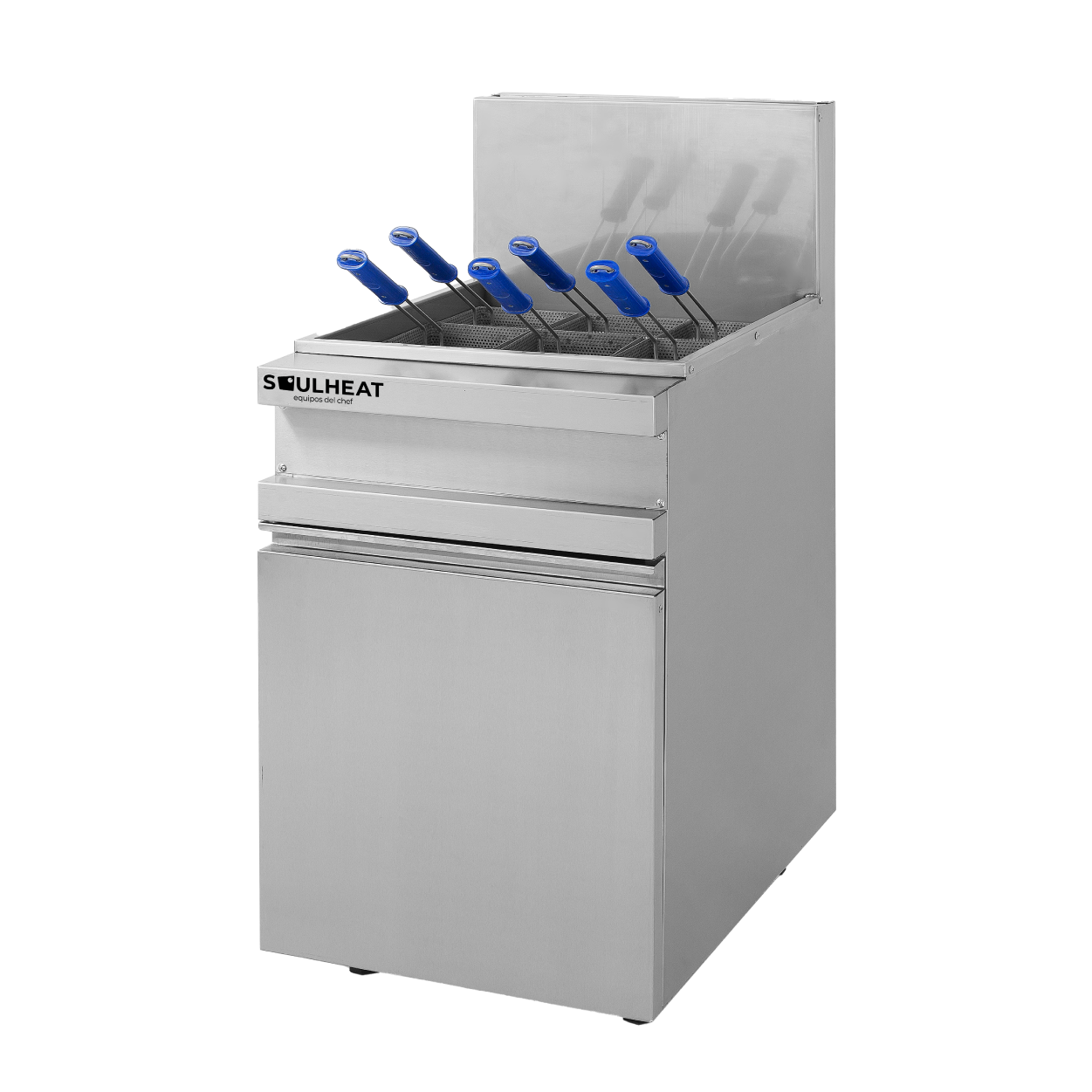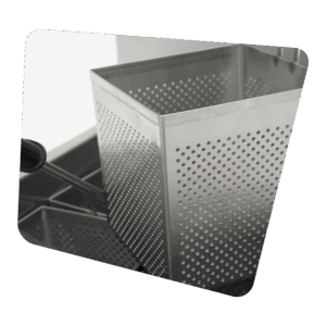- Equipado con seis canastos porcionadores de acero inoxidable de 160x160x160mm.