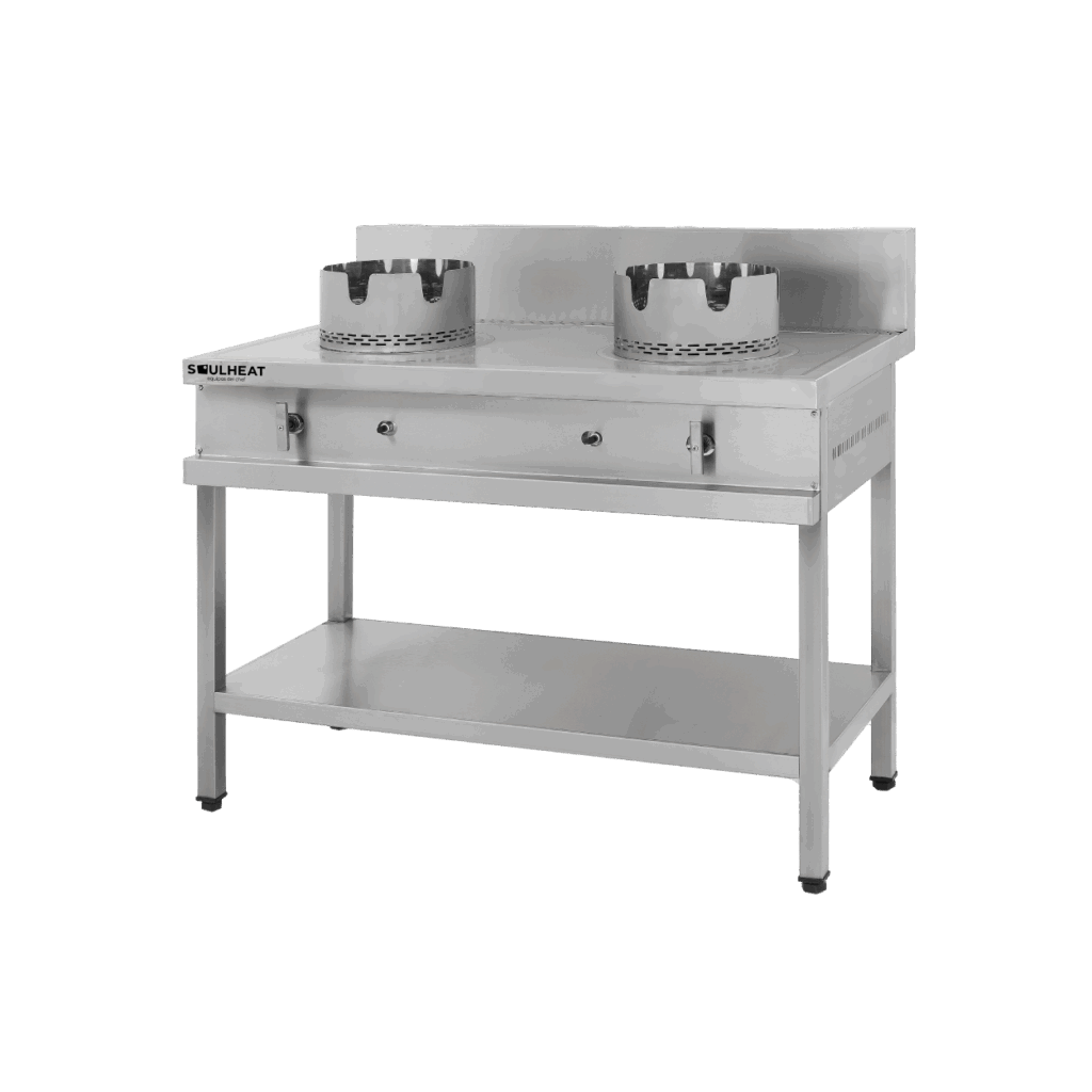 - Provisto de quemadores wok múltiples con inyectores tipo lanzallamas de bronce y hornallas de Ø300mm .